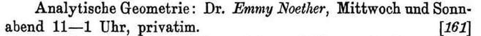Analytische Geometrie: Dr. Emmy Noether, Mittwoch und Sonnabend 11-1 Uhr, privatim.